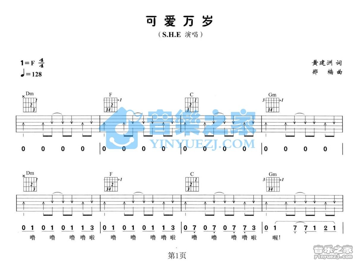 F调版S.H.E《可爱万岁》吉他弹唱六线谱...