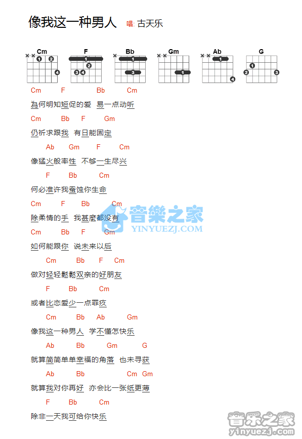 古天乐《像我这一种男人》吉他和弦弹唱谱...
