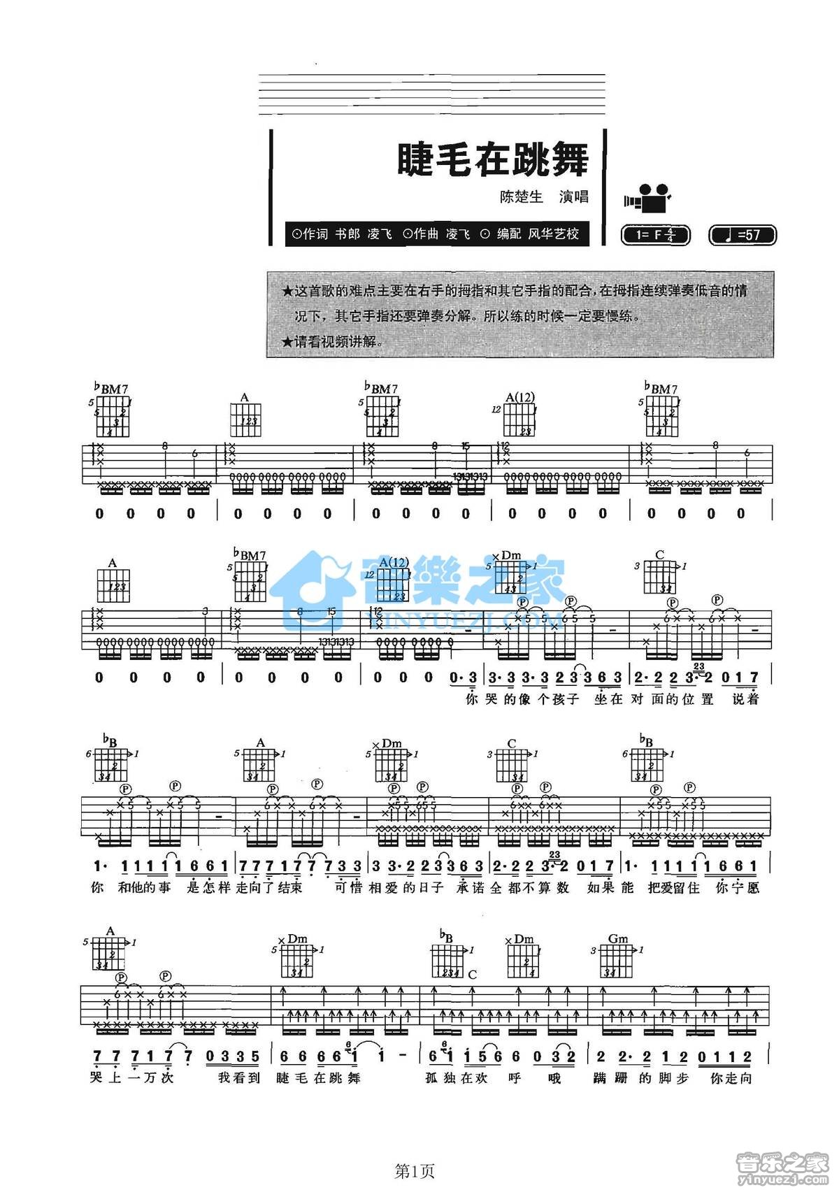 吉他陈楚生《睫毛在跳舞》吉他谱 - 完整版