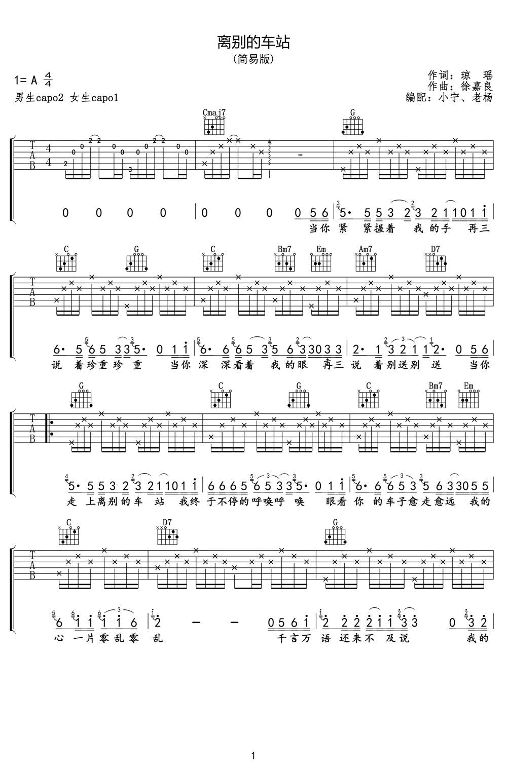 离别的车站吉他谱,简单版弹唱谱,琼瑶电视剧《情深深雨蒙蒙》片尾曲,离别的车站六线谱,男生变调夹夹二品,女生变调夹夹一品。一首经典的怀旧老歌,情深意长,唱出了男女主角无尽的思念,前阵子被好妹妹乐队翻唱又火了起来。...