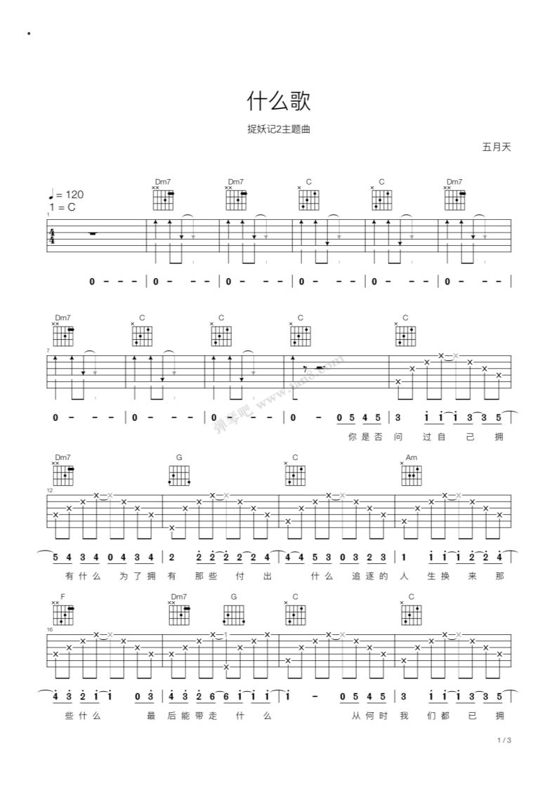 五月天《什么歌》吉他谱,弹琴吧编配出品,共有3张高清图谱。...