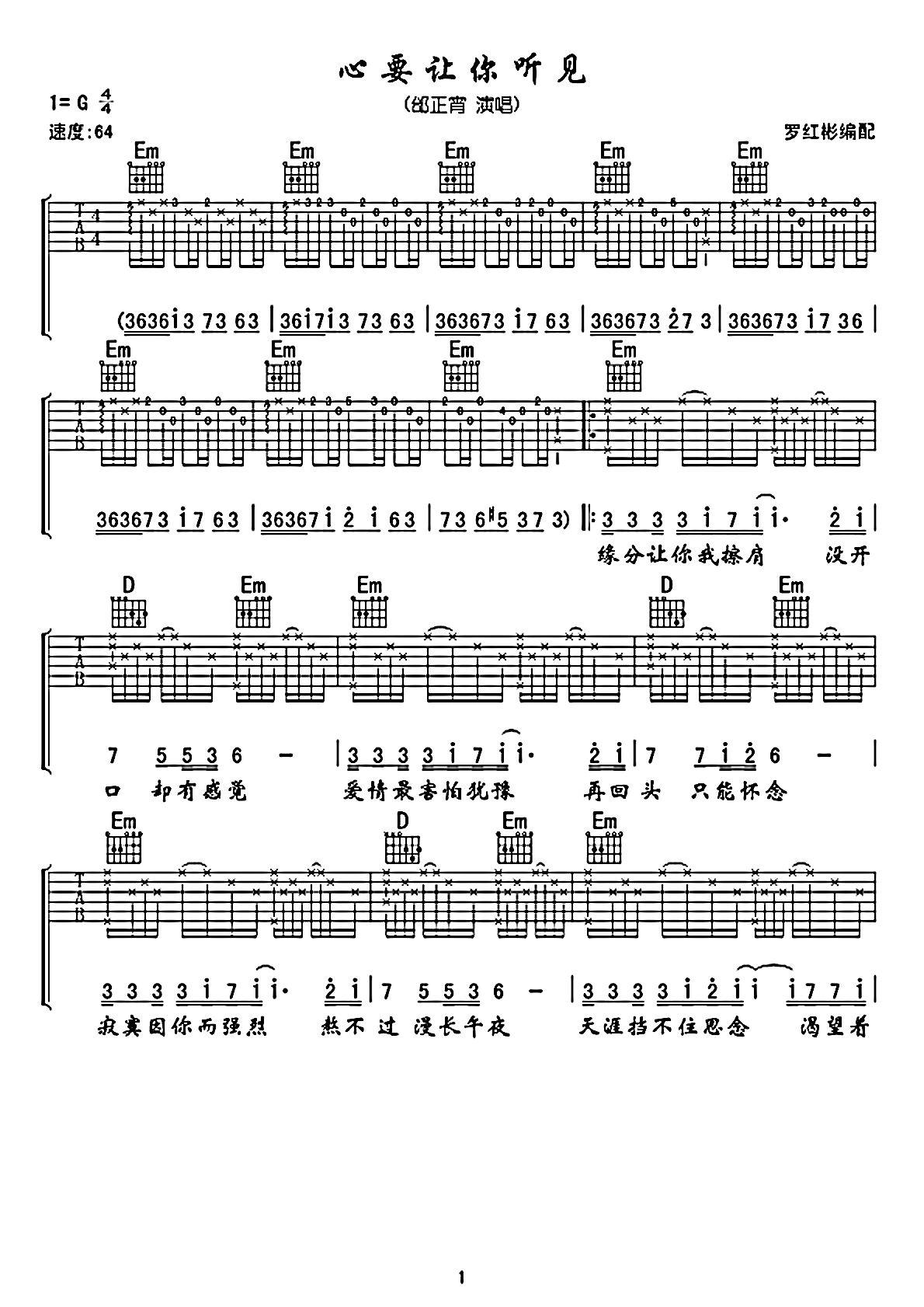 邰正宵《心要让你听见》吉他谱_G调吉他弹唱谱...