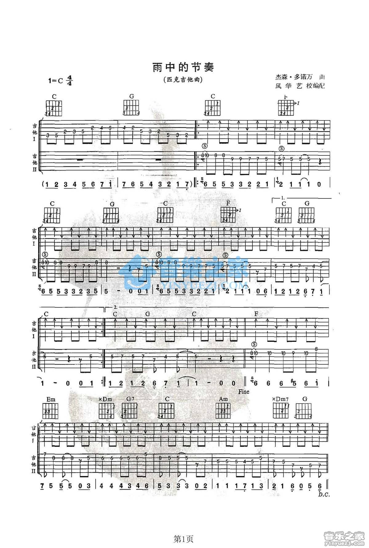 C调双吉他版《SingingintheRain/雨中曲》吉他弹唱六线谱...