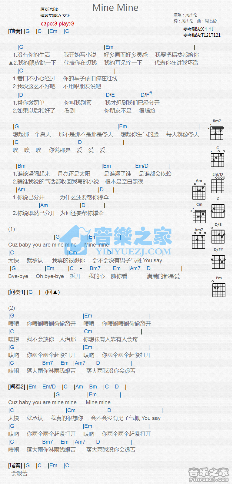吉他周杰伦《Mine Mine》吉他谱 - 非常多人都在弹的版本