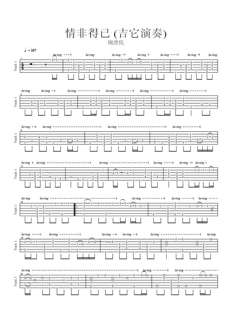 吉他庾澄庆《情非得已》吉他谱