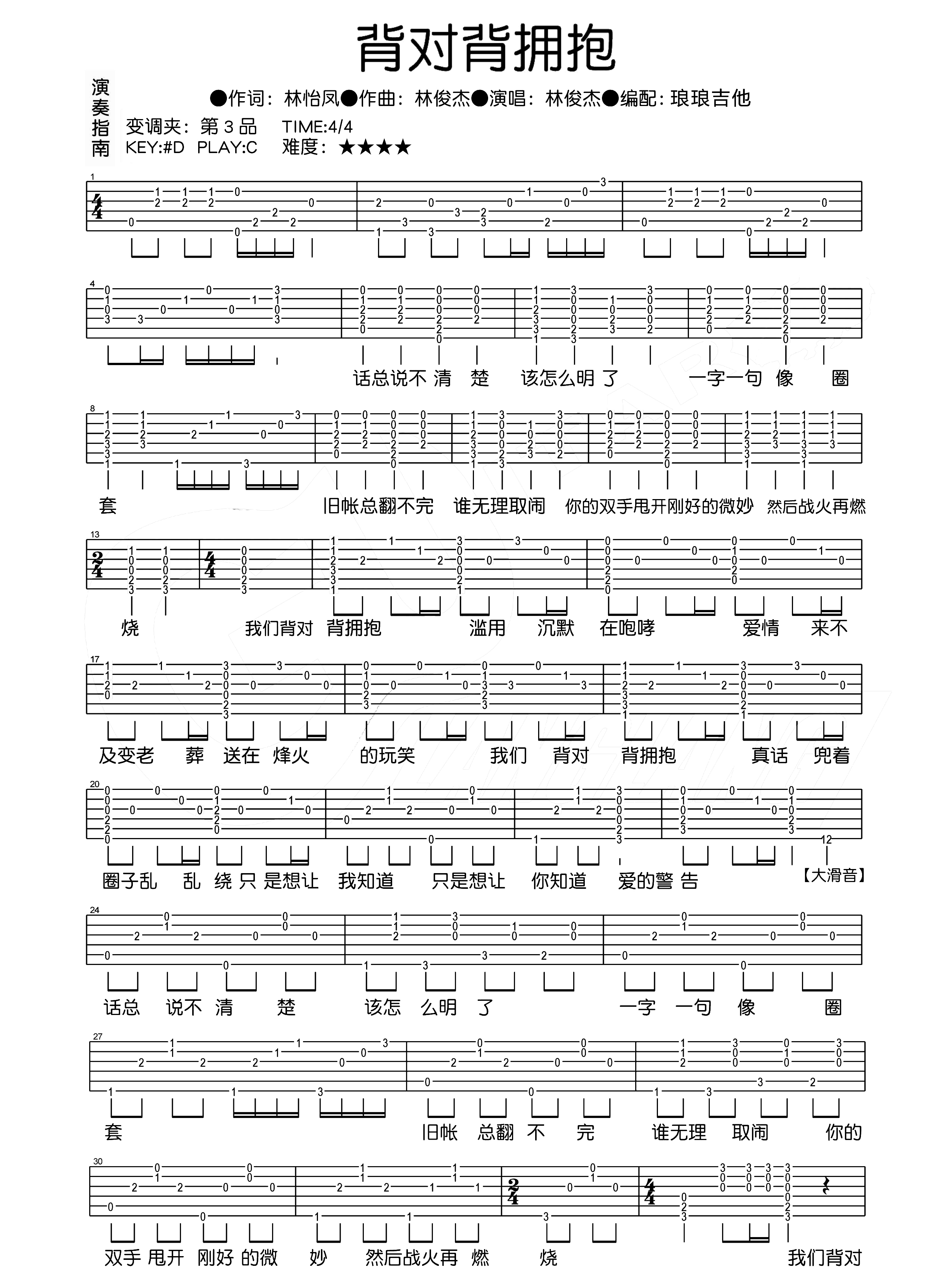 吉他林俊杰《背对背拥抱》吉他谱 - 好听到爆炸