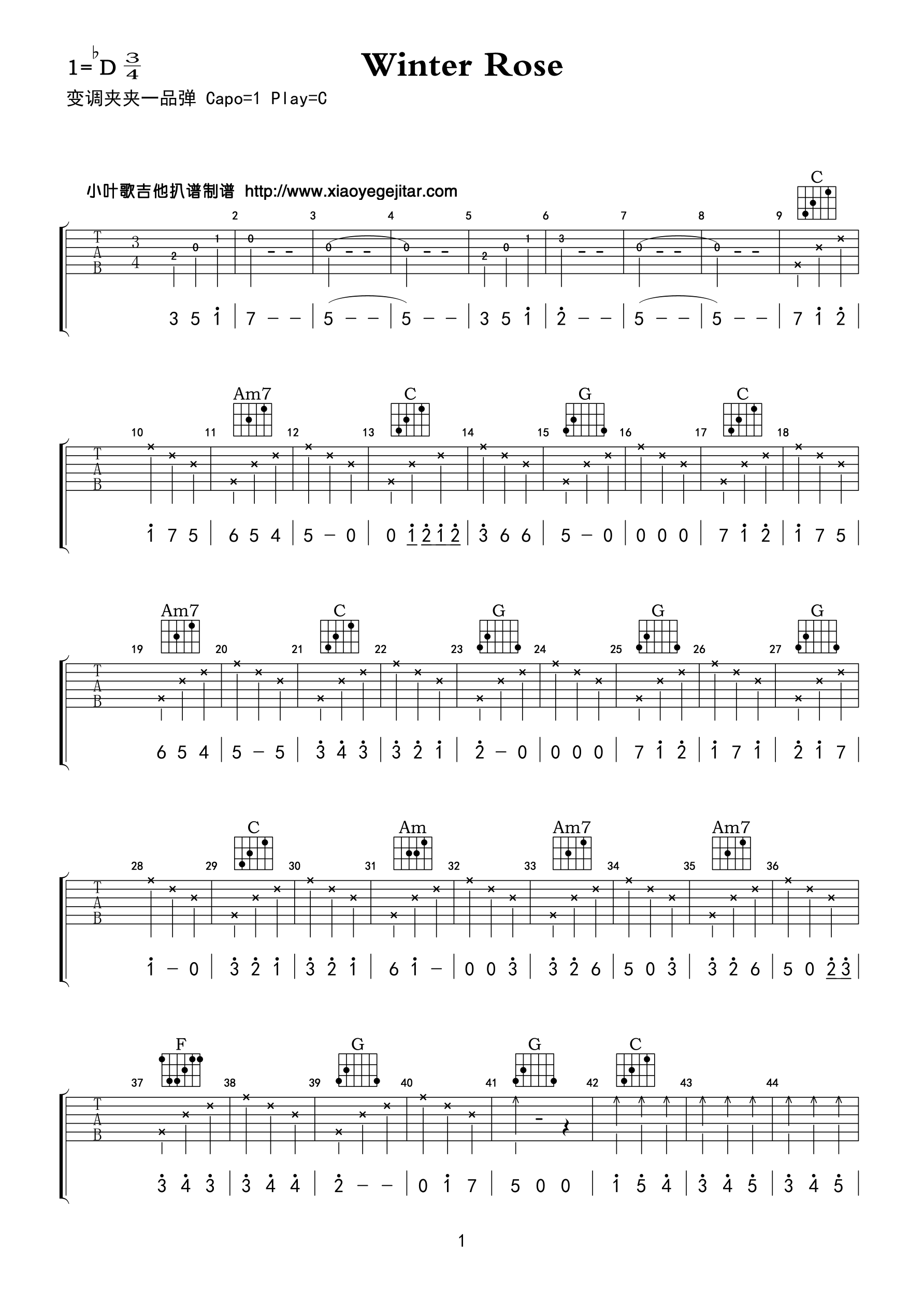 东方神起《WinterRose》吉他谱,小叶歌编配出品,共有6张高清图谱。...