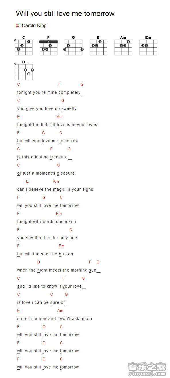 吉他Carole King《Will you still love me tomorrow》吉他谱