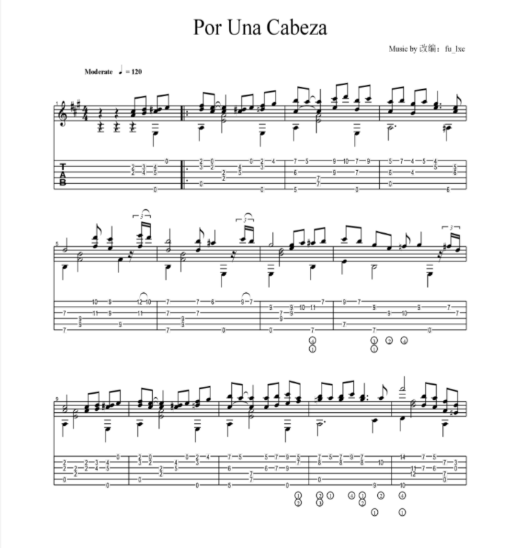 吉他《Por Una Cabeza》吉他谱 - 很多人都在弹的版本