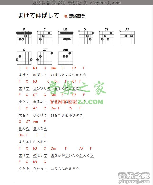 汤浅美《まげてのばして》吉他谱,YYZJ编配出品,共有1张高清图谱,免翻页排版设计。...