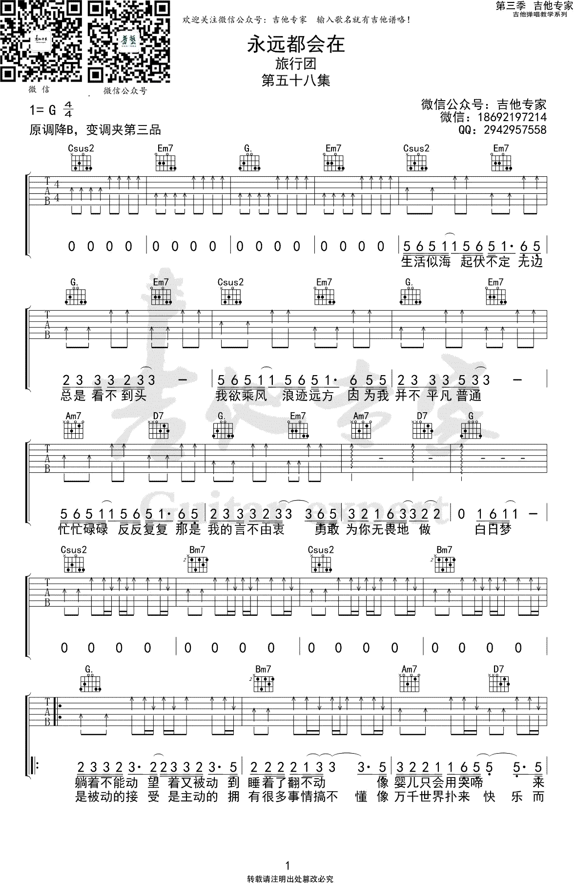 吉他旅行团乐队《永远都会在》吉他谱 - 吉他专家编配