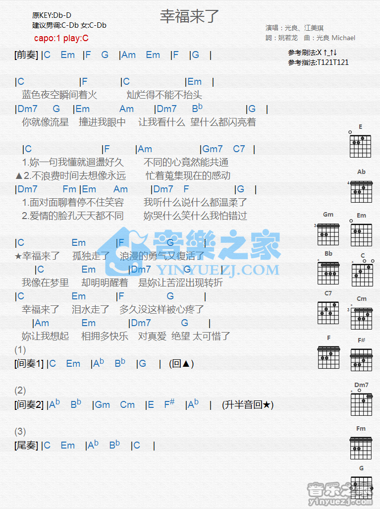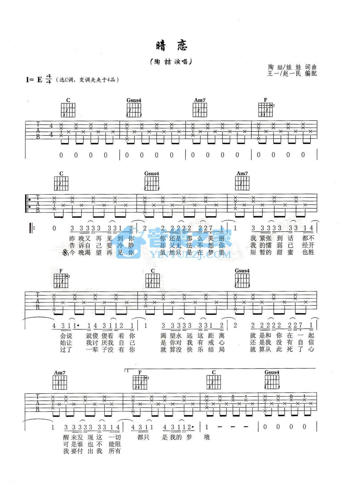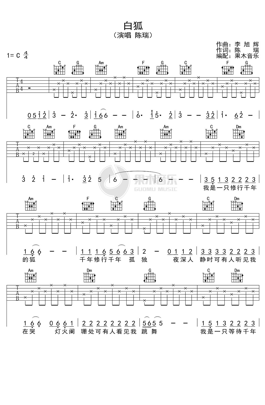 陈瑞《白狐》吉他谱_C调吉他弹唱谱...