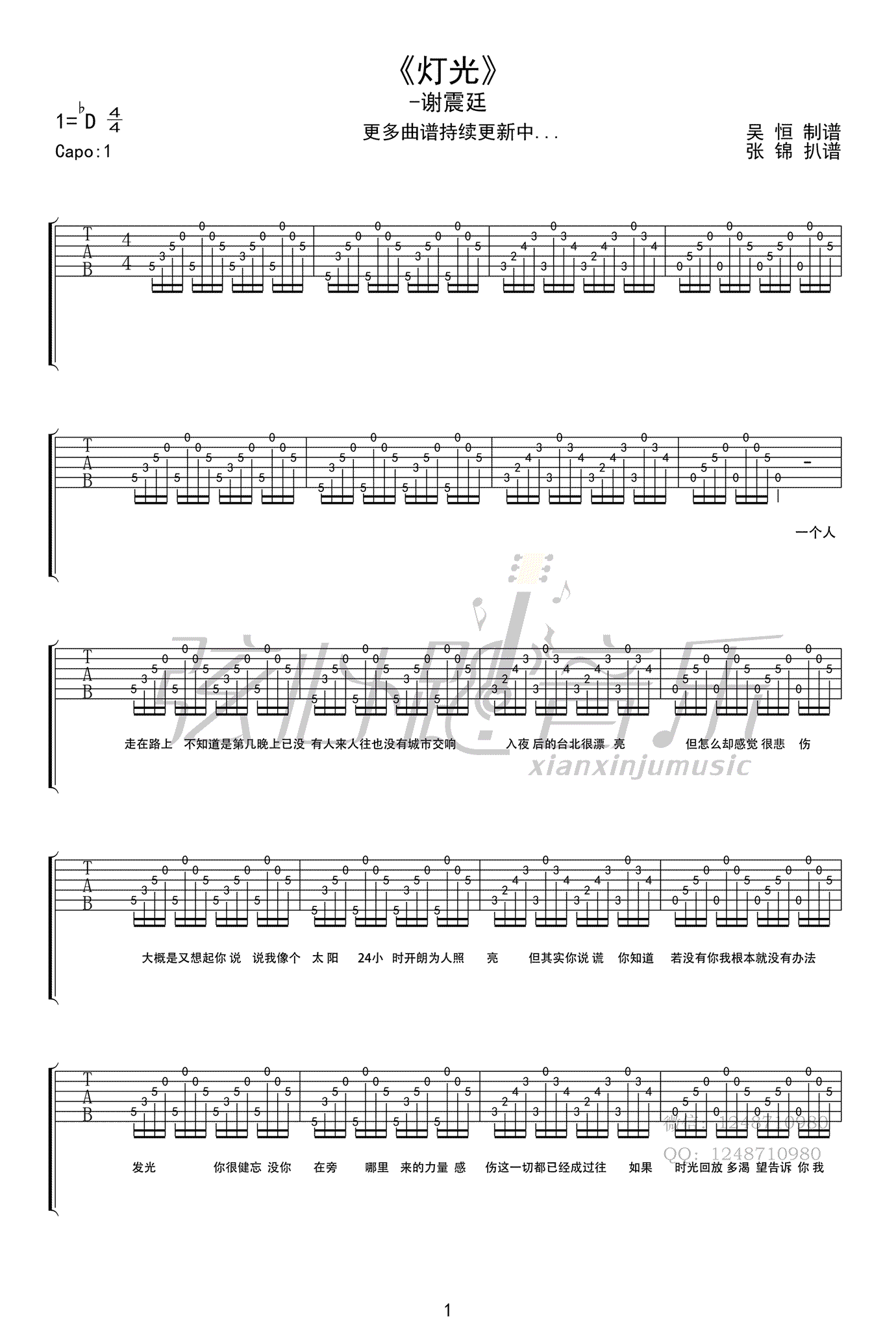 吉他谢震廷《灯光》吉他谱 - 非常多人都在弹的版本