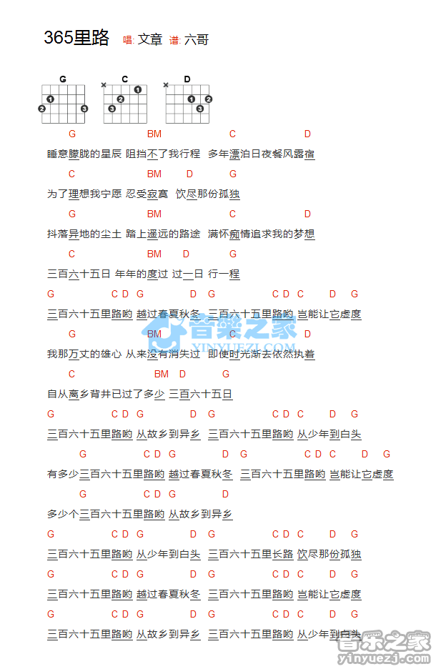 吉他文章《365里路》吉他谱 - 非常多人都在弹的版本