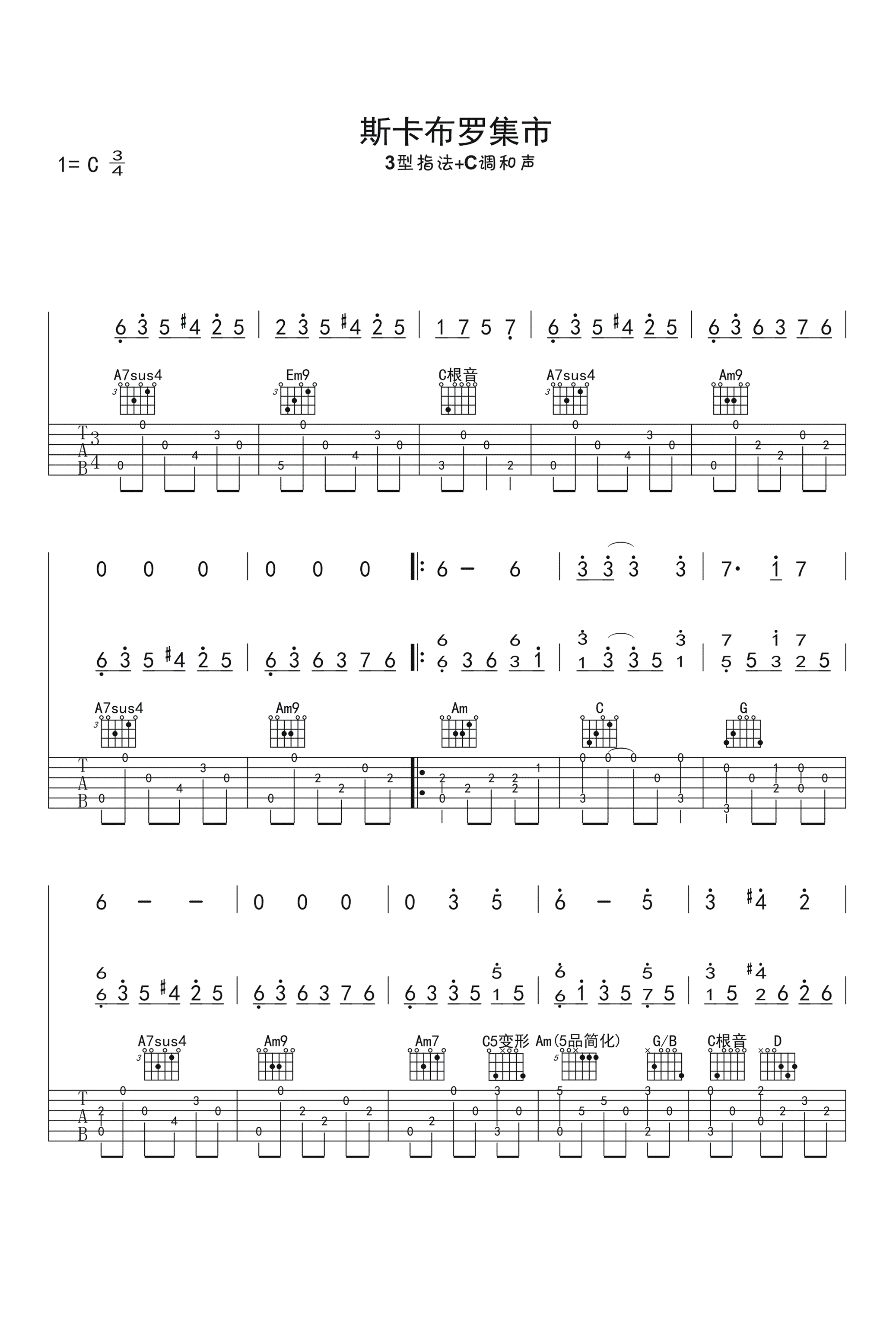 吉他保罗·西蒙《斯卡布罗集市》吉他谱 - 小编推荐练习