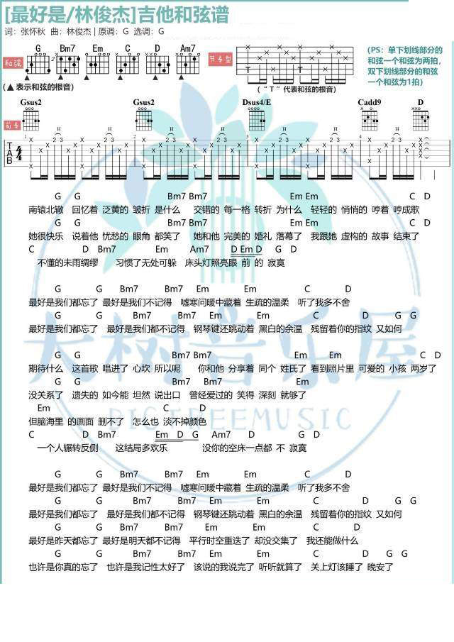 林俊杰《最好是》吉他谱,大树音乐屋编配出品,共有1张高清图谱,免翻页排版设计。...