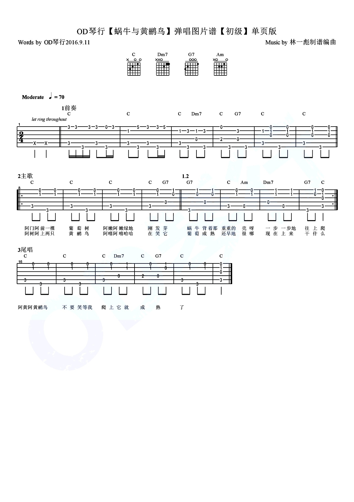 吉他《蜗牛与黄鹂鸟》吉他谱 - OD琴行--林一彪编配