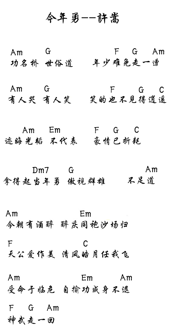 许嵩《今年勇》吉他和弦弹唱谱...