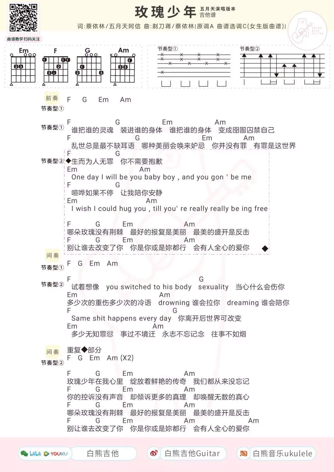吉他五月天/蔡依林《玫瑰少年》吉他谱 - 推荐版本