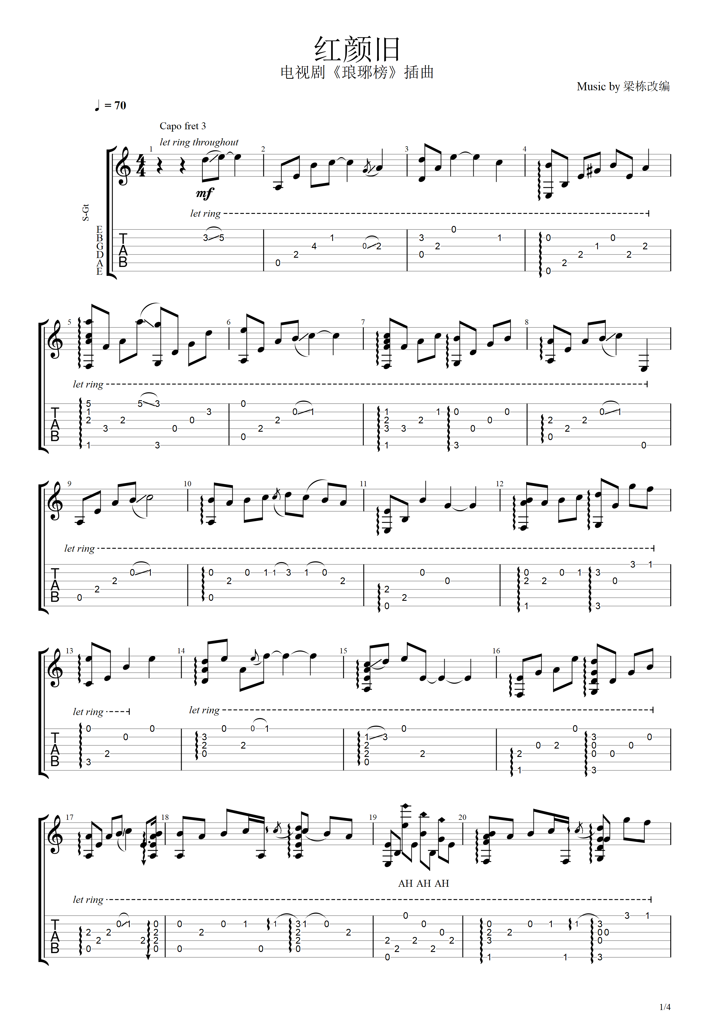 吉他《红颜旧》吉他谱 - 非常多人都在弹的版本
