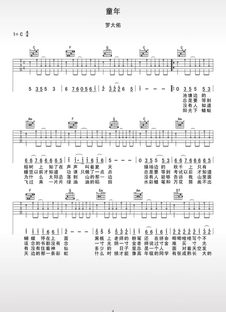 罗大佑《童年》吉他谱_C调吉他弹唱谱...