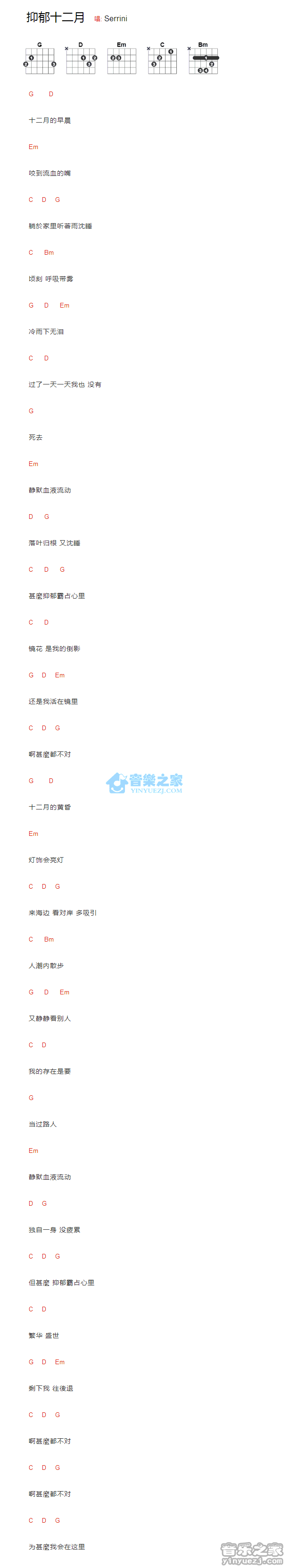 Serrini《抑郁十二月》吉他和弦弹唱谱...