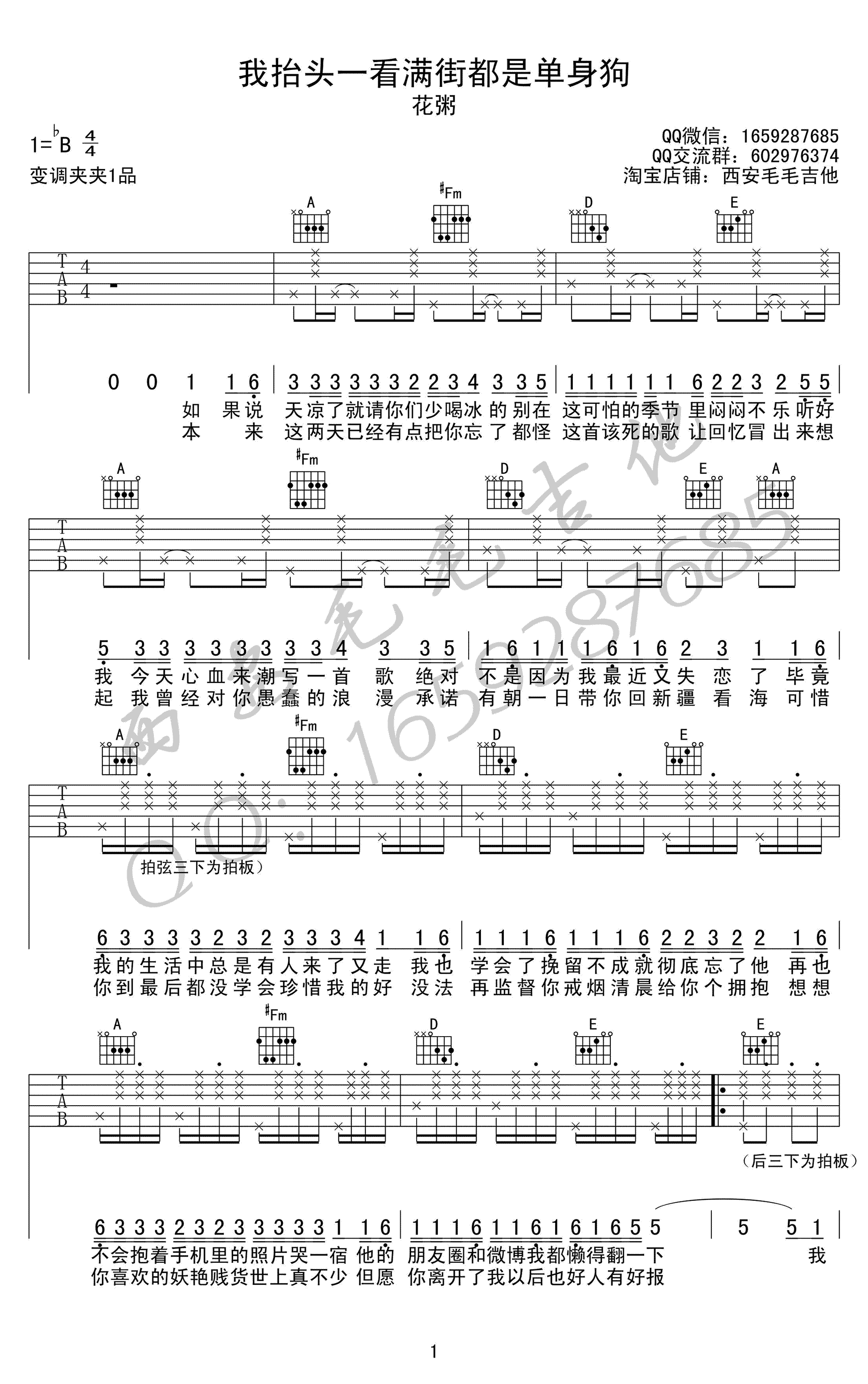 吉他花粥《我抬头一看满街都是单身的狗》吉他谱 - 推荐版本