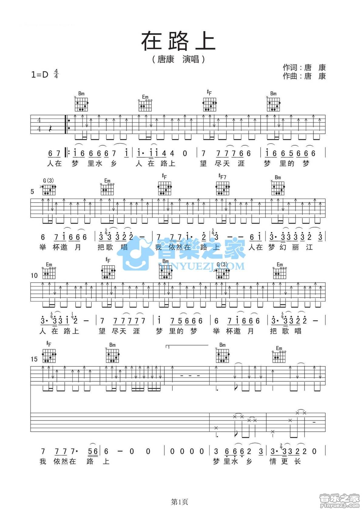 丽江酒吧D调原版丽江康康《在路上》吉他弹唱六线谱...