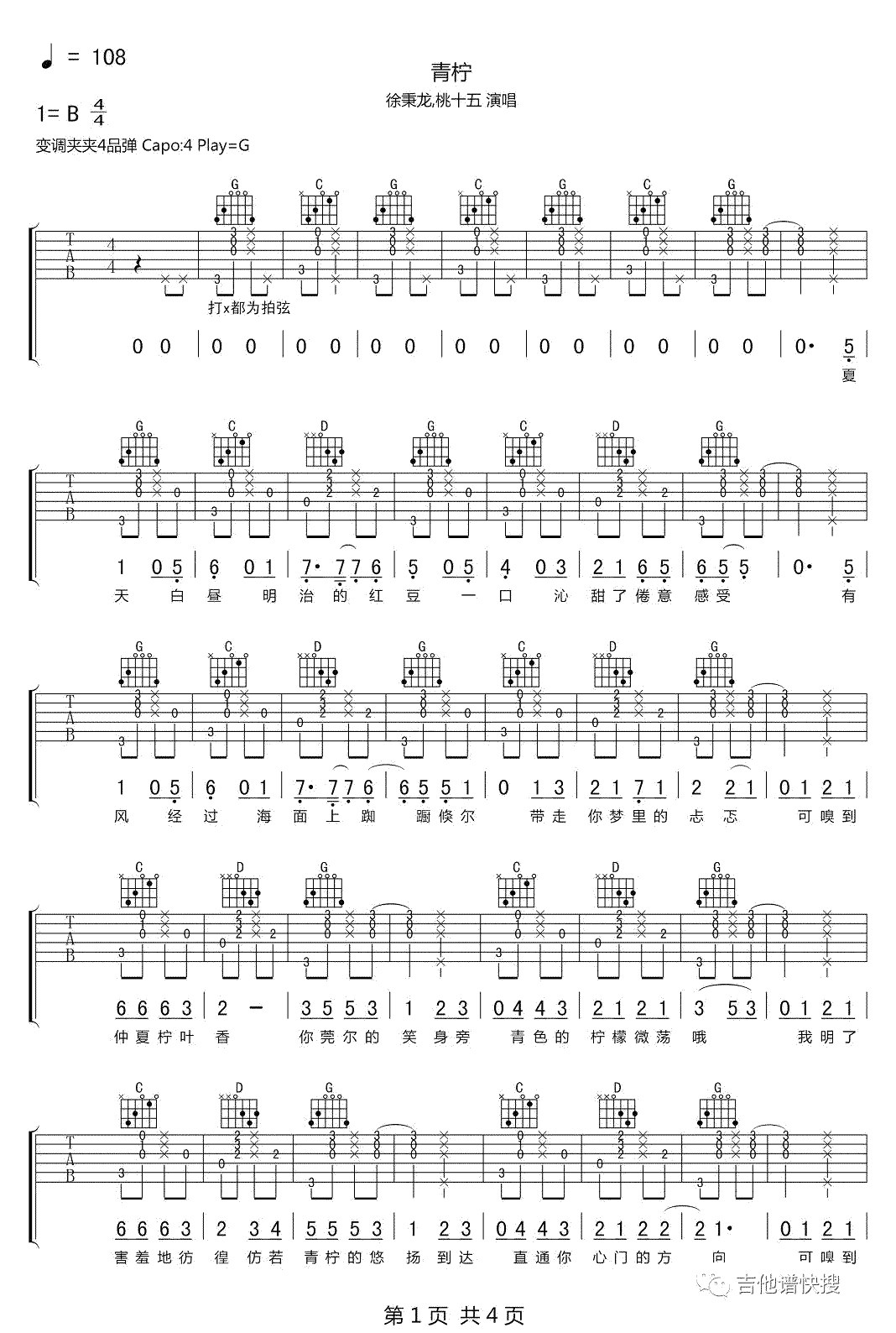 吉他徐秉龙/桃十五《青柠》吉他谱