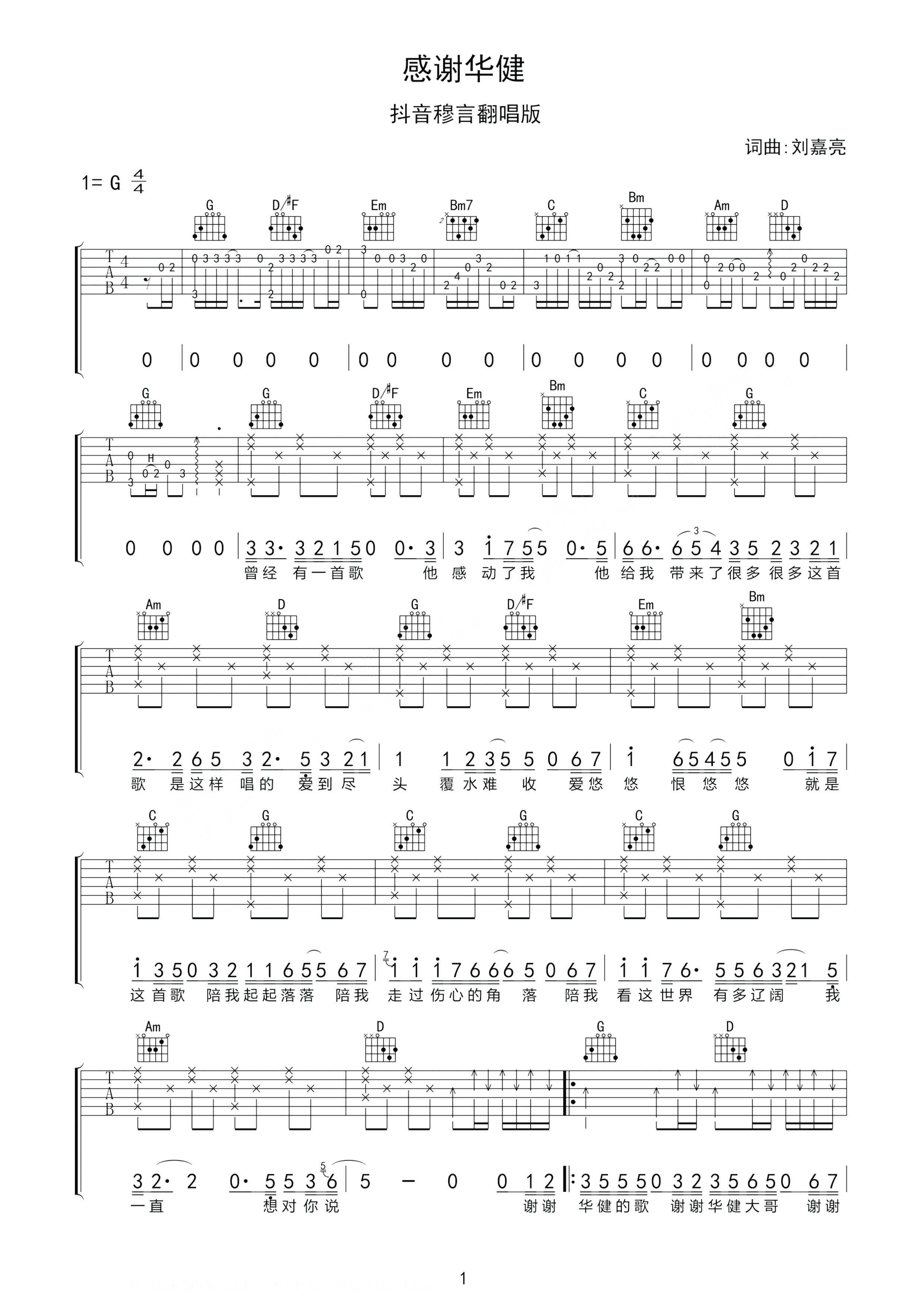抖音穆言《感谢华建》吉他谱_G调吉他弹唱谱...