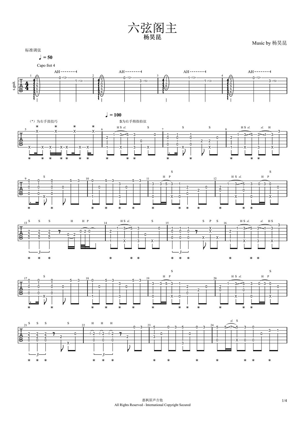 吉他杨昊昆《六弦阁主》吉他谱 - 完整版