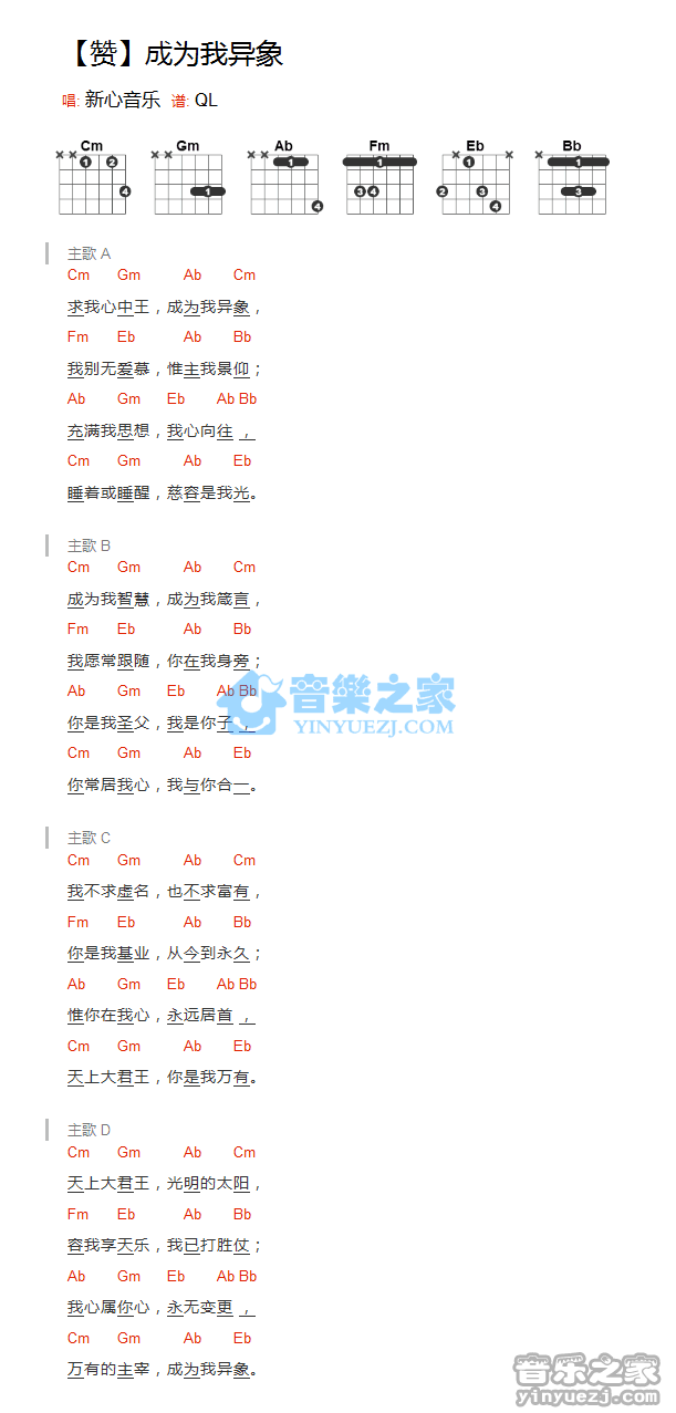 新心音乐《成为我异象》吉他和弦弹唱谱...