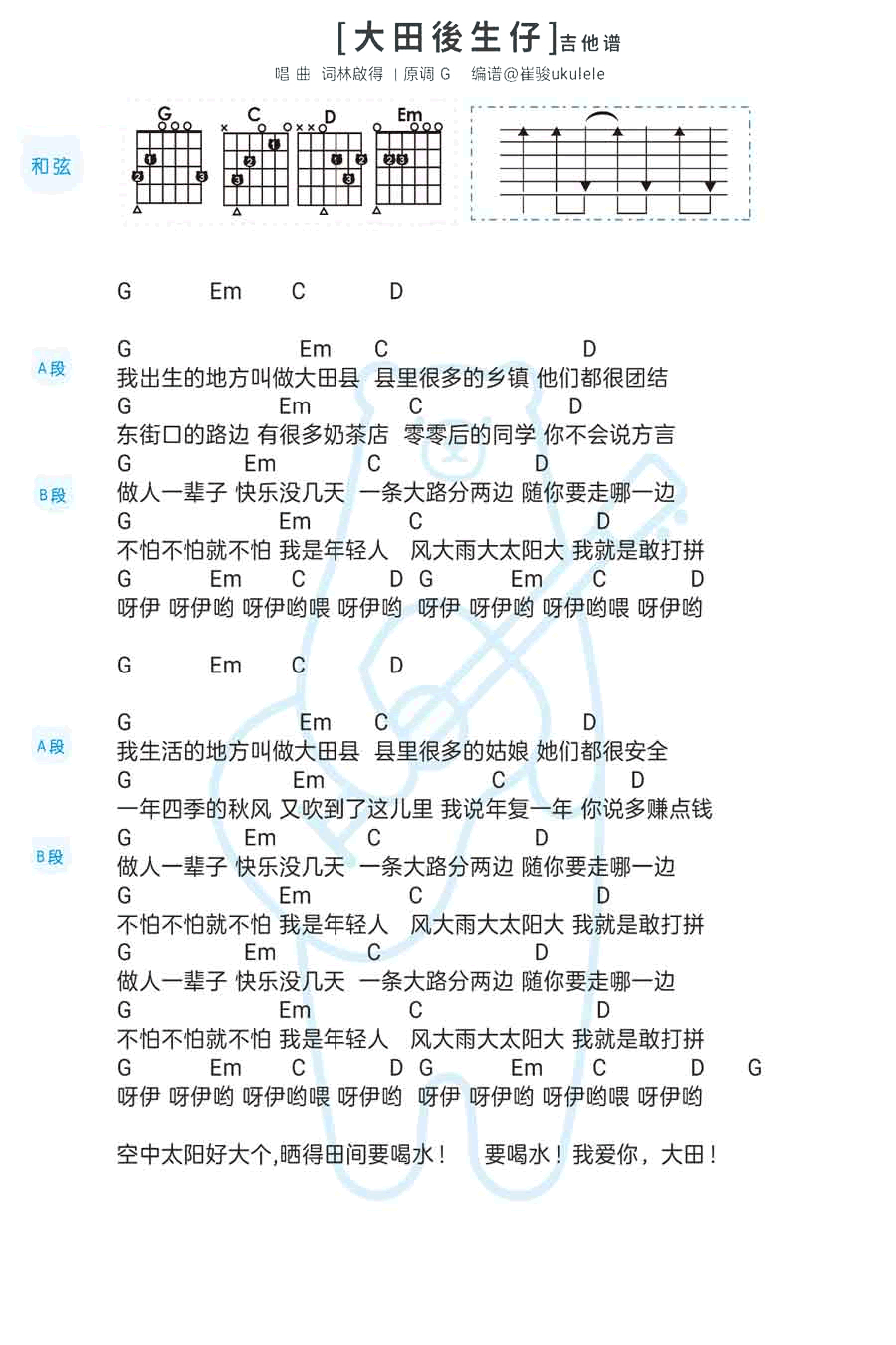 林啟得《大田后生仔》吉他谱_G调吉他弹唱谱_和弦谱...