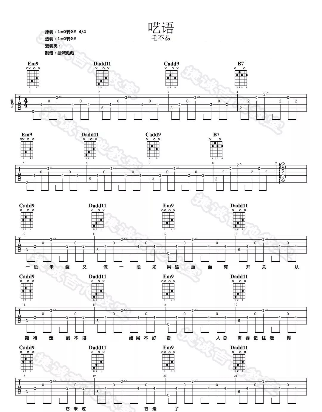 吉他毛不易《呓语》吉他谱 - 好听到爆炸