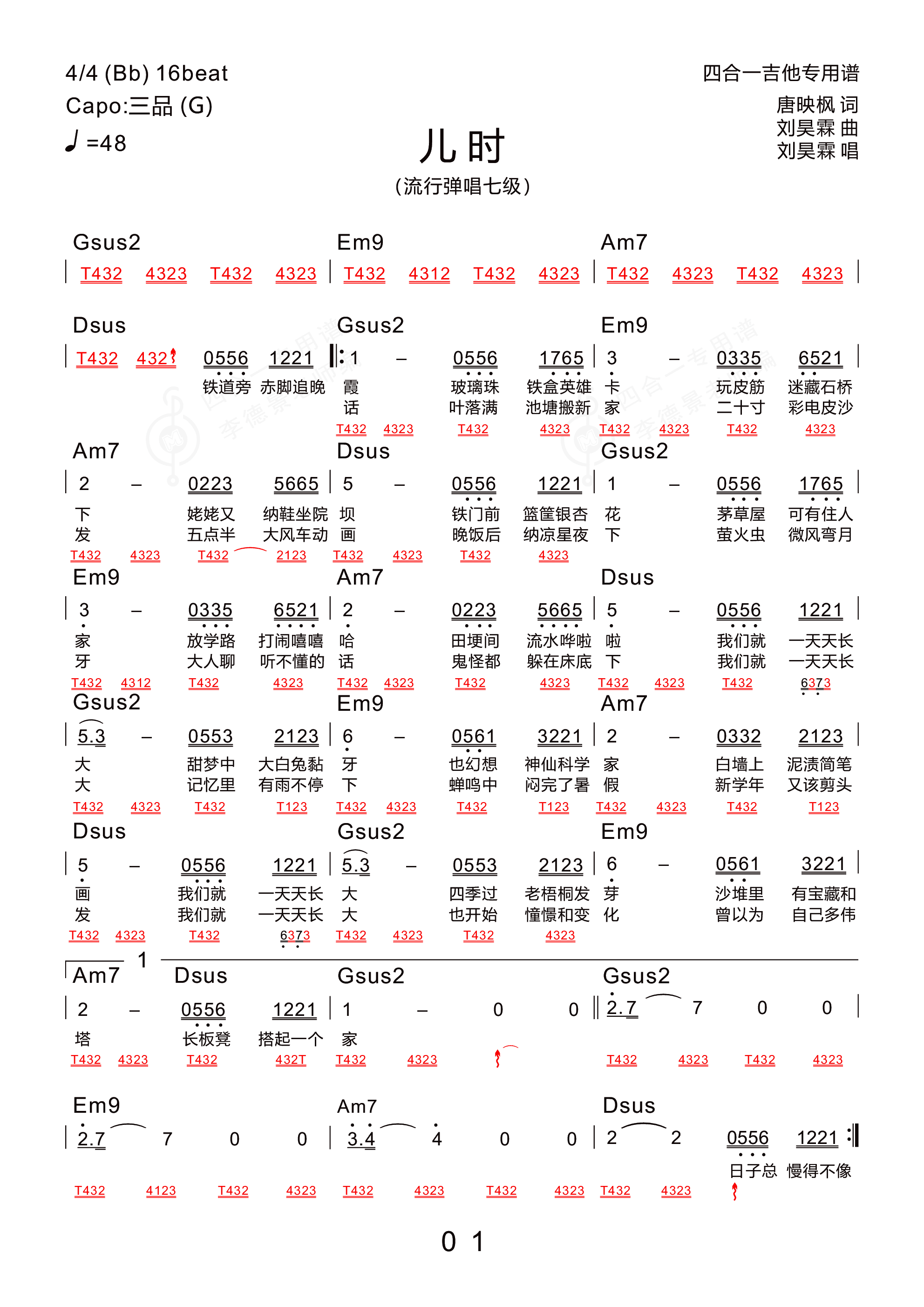 吉他刘昊霖《儿时》吉他谱 - 免费版