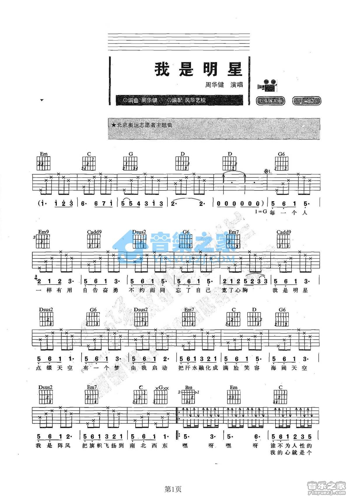 吉他周华健《我是明星》吉他谱 - 很多人都在弹的版本