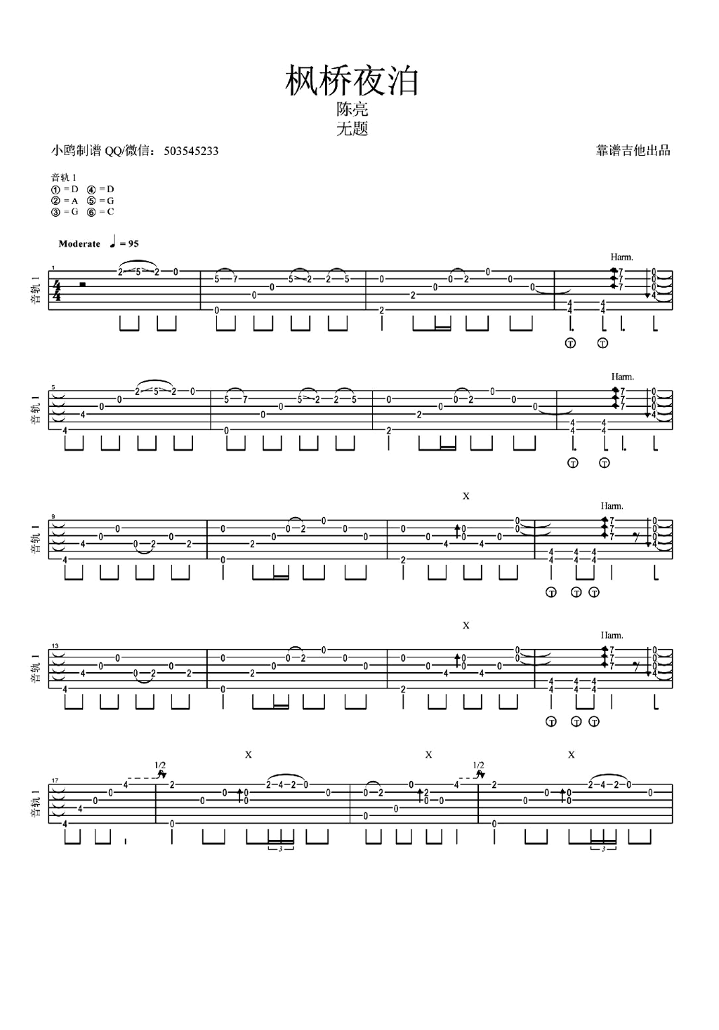 吉他陈亮《枫桥夜泊》吉他谱 - 小编推荐练习