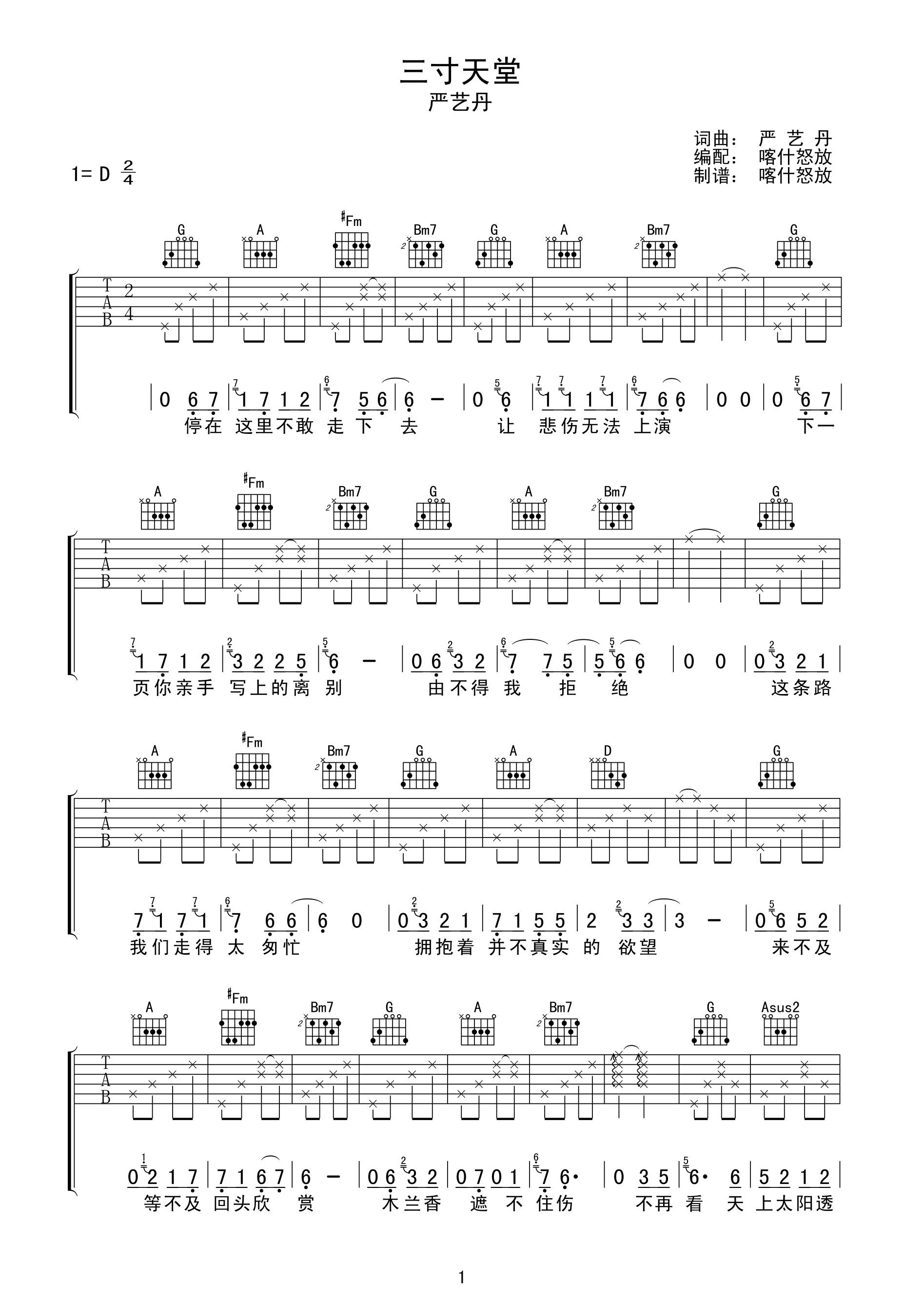 吉他严艺丹《三寸天堂》吉他谱 - 很多人都在弹的版本