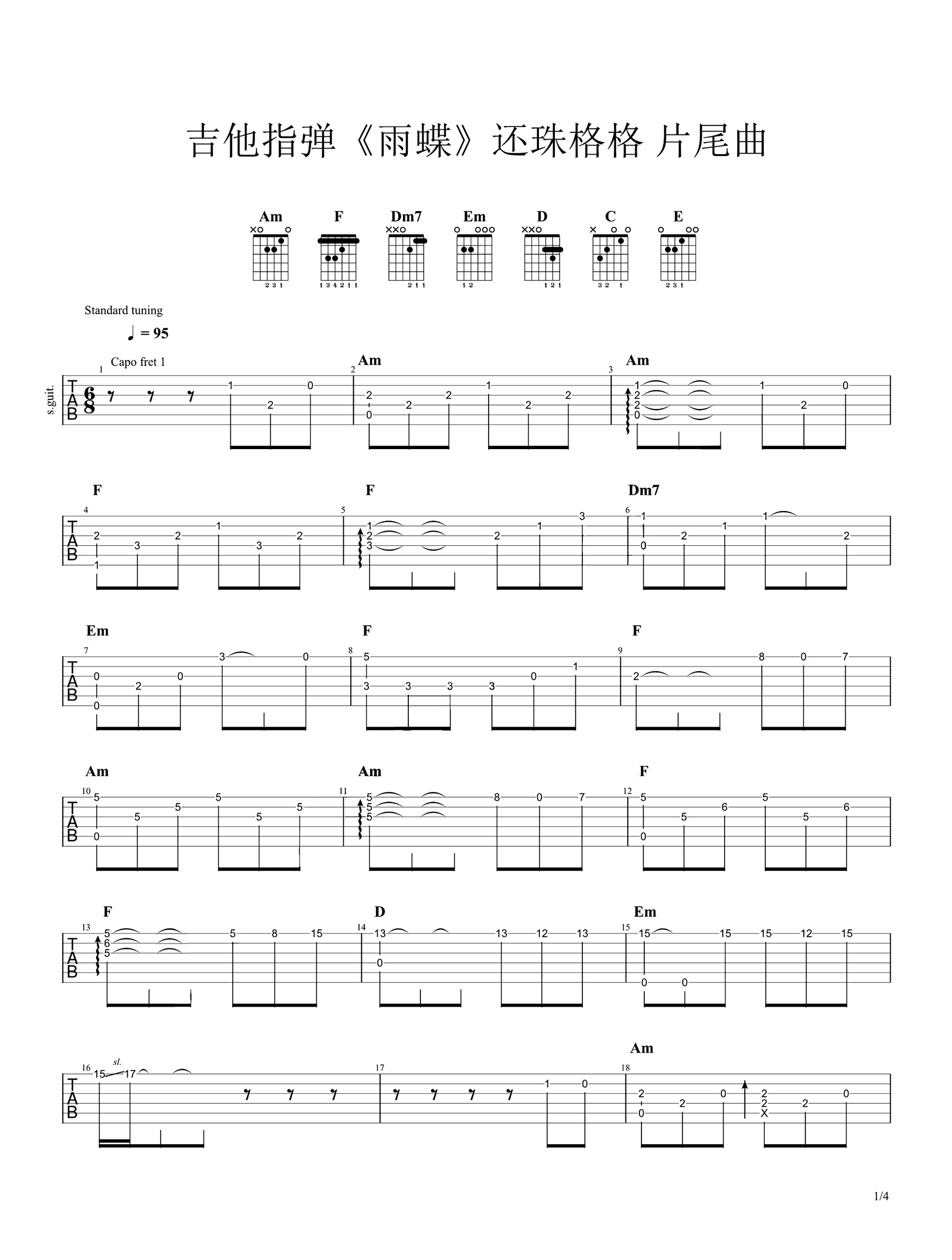吉他李翊君《雨蝶》吉他谱 - 好听到爆炸