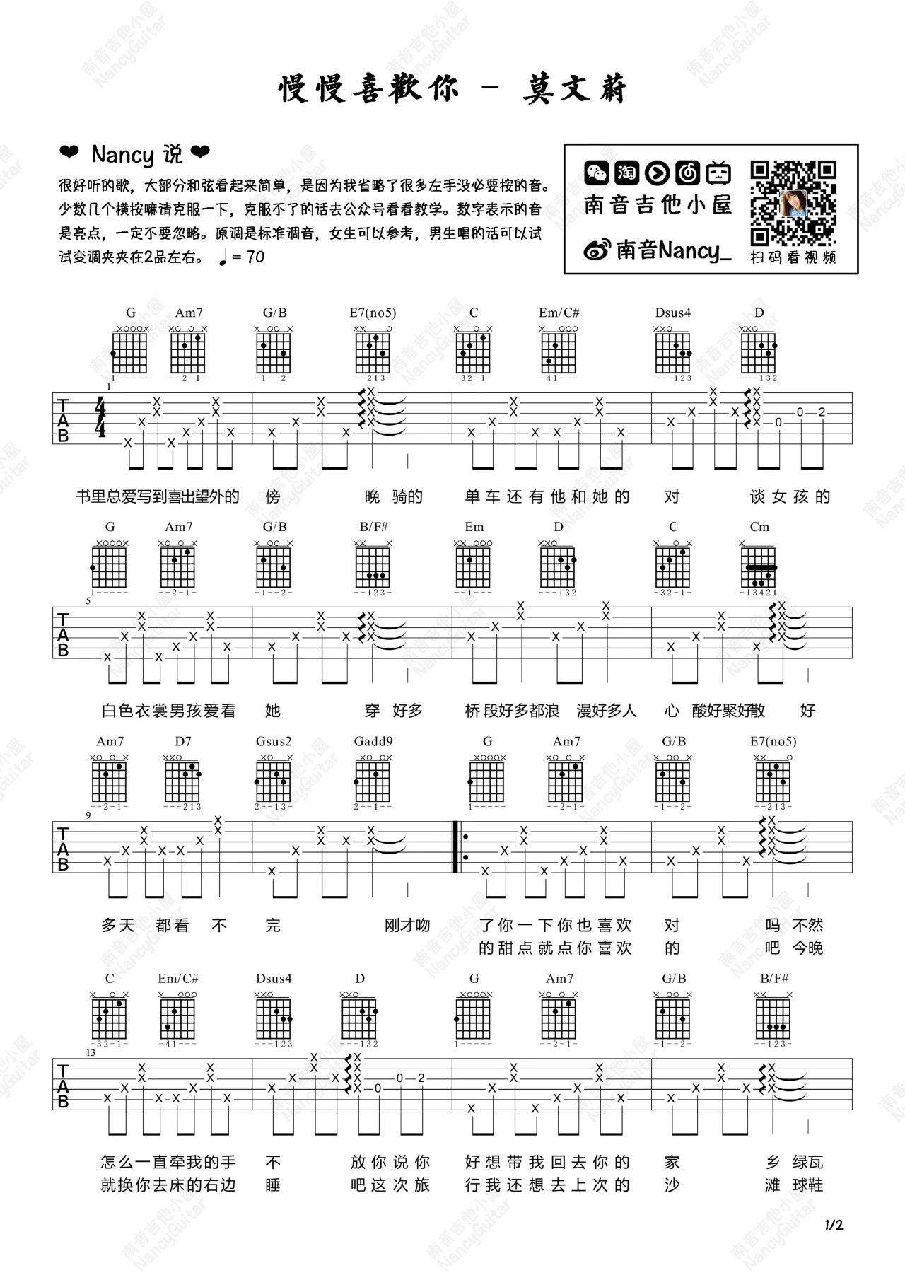 莫文蔚《慢慢喜欢你》吉他谱_吉他弹唱谱...