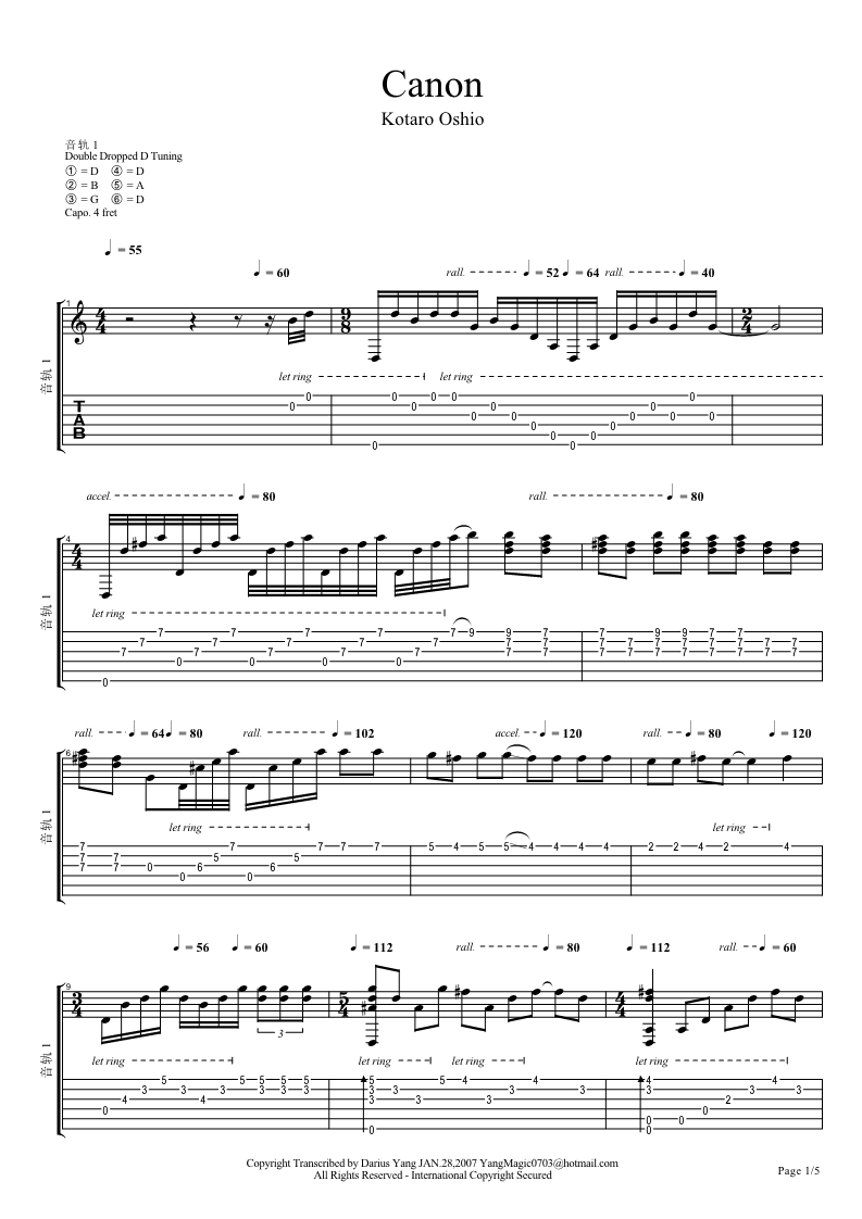押尾《卡农原版带前奏》吉他谱...