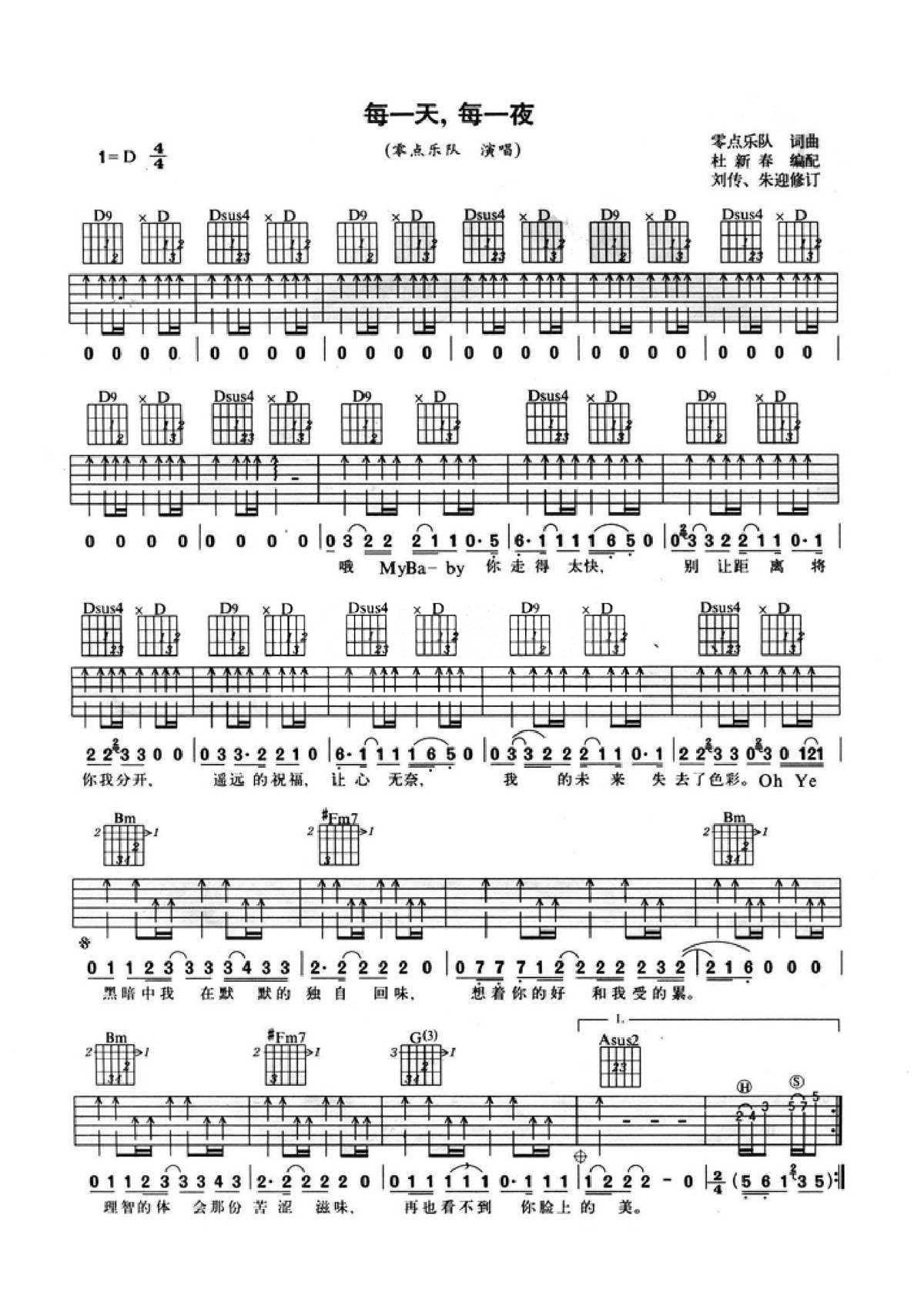吉他零点乐队《每一天每一夜》吉他谱 - 非常多人都在弹的版本