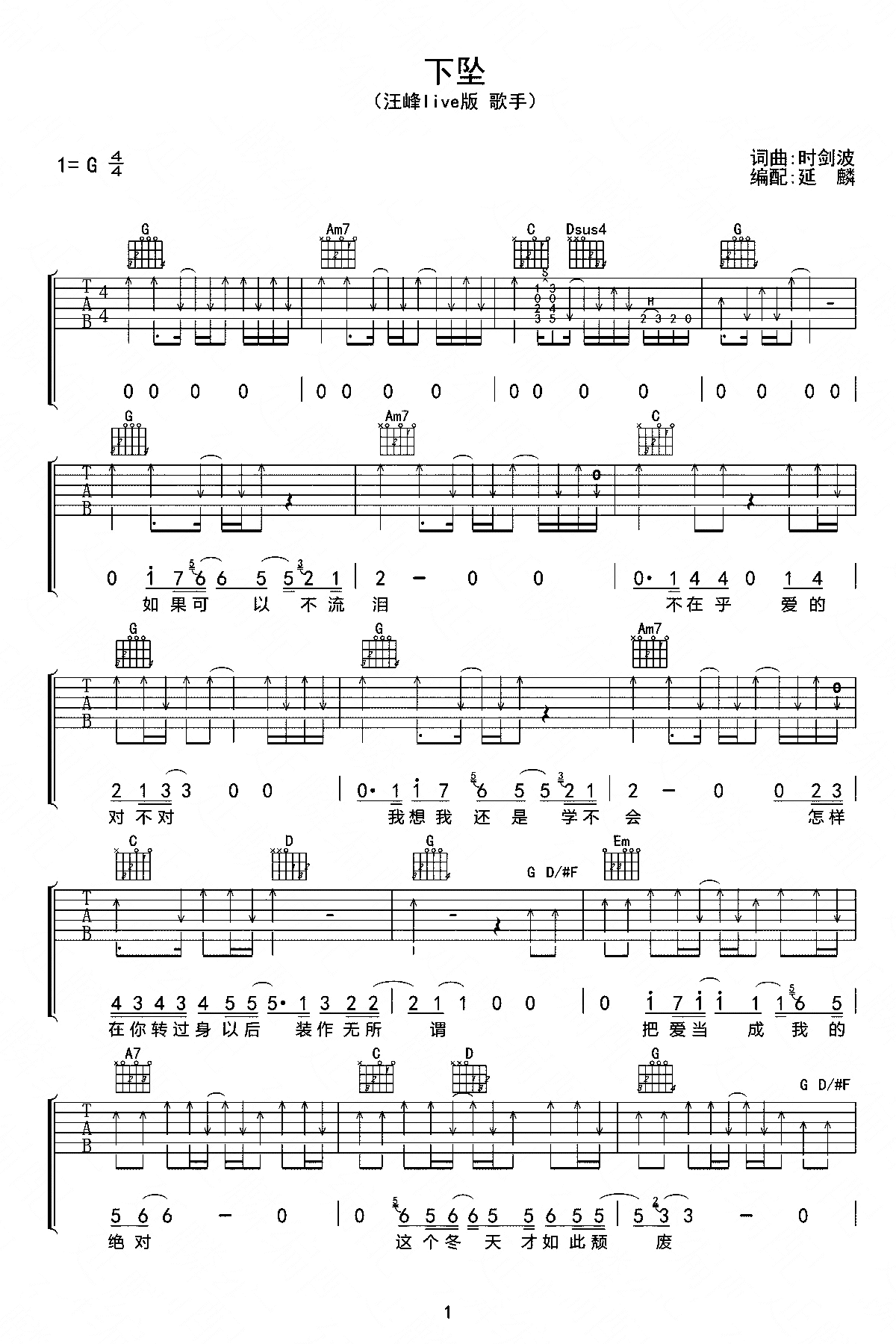 吉他汪峰《下坠》吉他谱 - 推荐版本