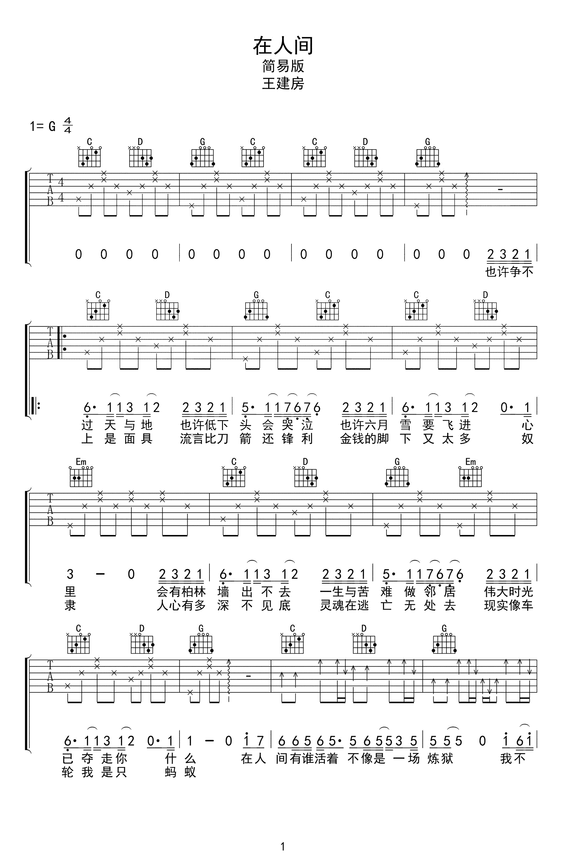 吉他王建房《在人间》吉他谱 - 好听到爆炸