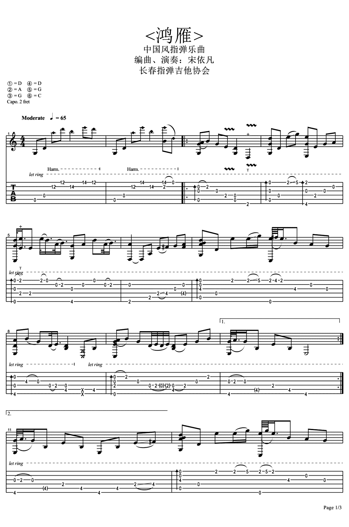 吉他中国风指弹乐曲《鸿雁》吉他谱 - 很多人都在弹的版本
