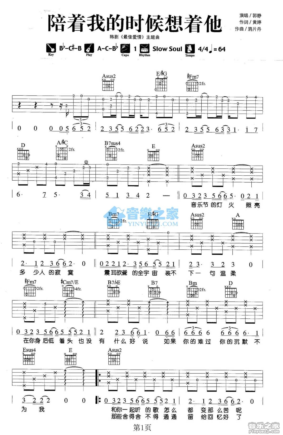 吉他 郭静《陪着我的时候想着他》吉他谱 - 免费版
