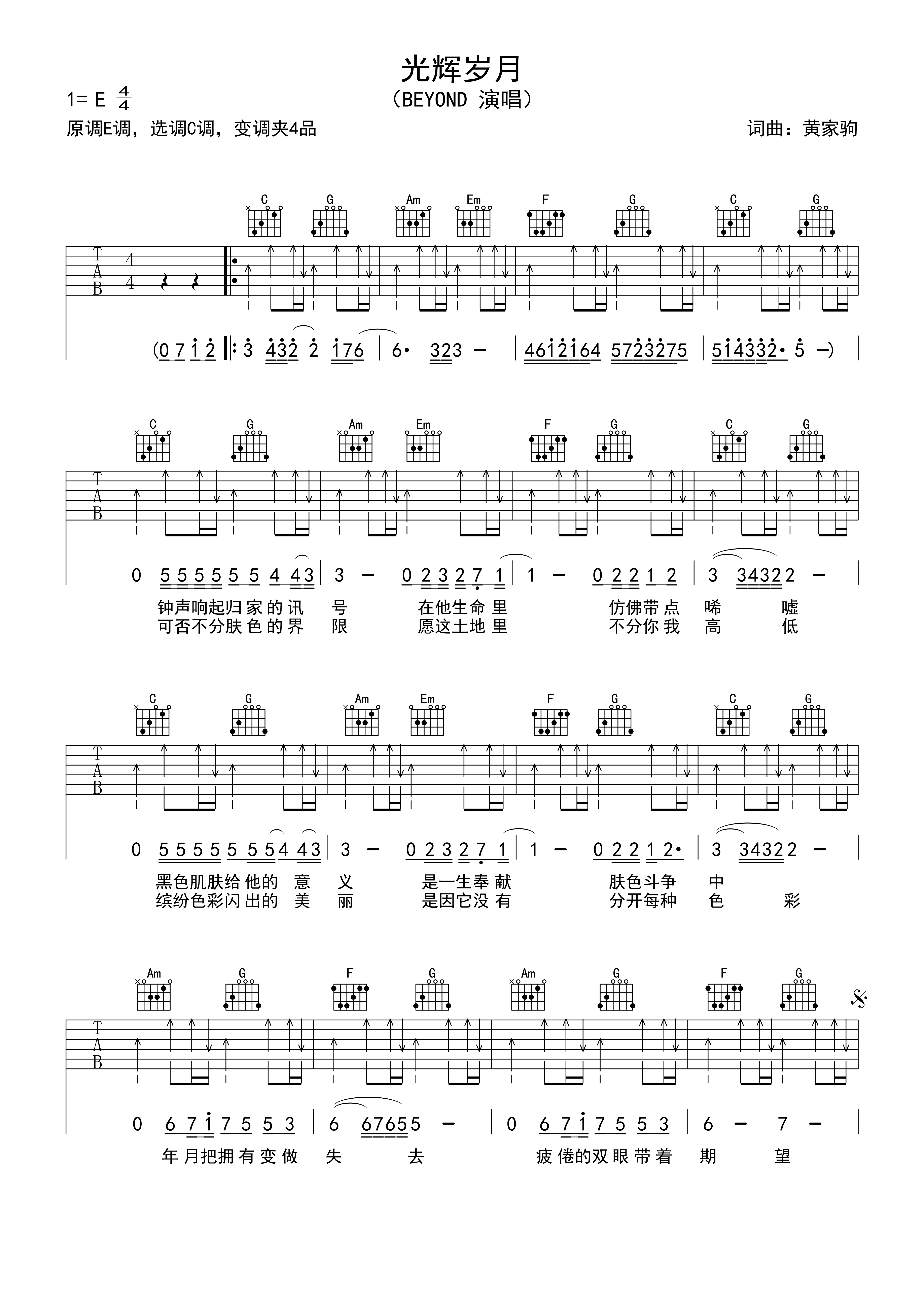 吉他BEYOND《光辉岁月》吉他谱 - 好听到爆炸