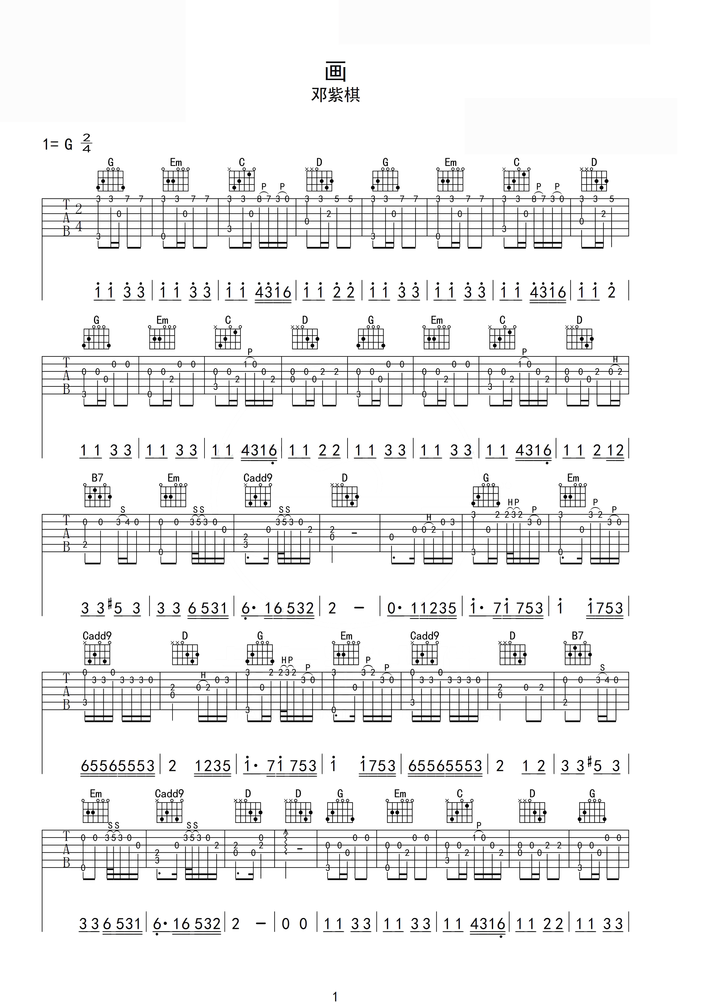 吉他邓紫棋《画》吉他谱 - 推荐版本