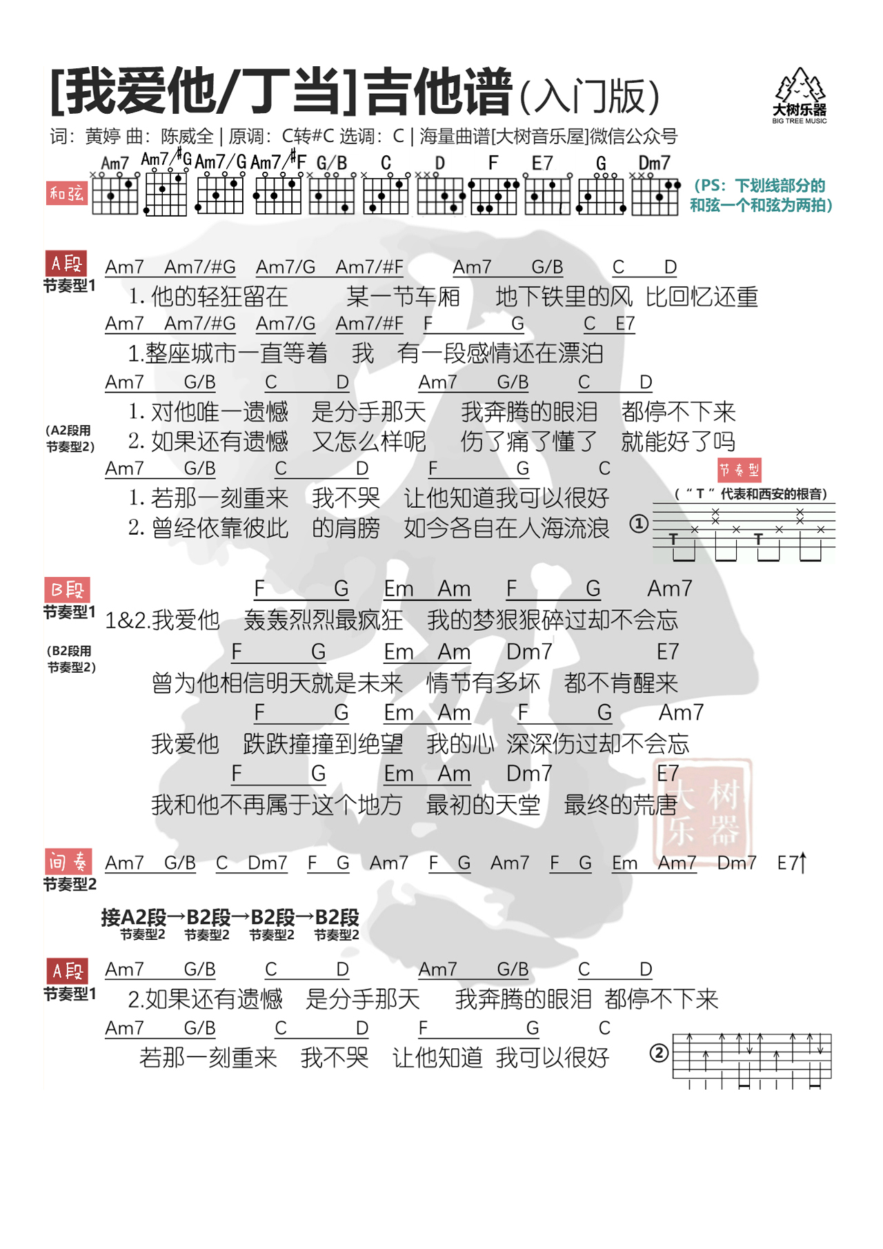 陈奕迅《阴天快乐》吉他谱,大树音乐屋编配出品,共有1张高清图谱,免翻页排版设计。...