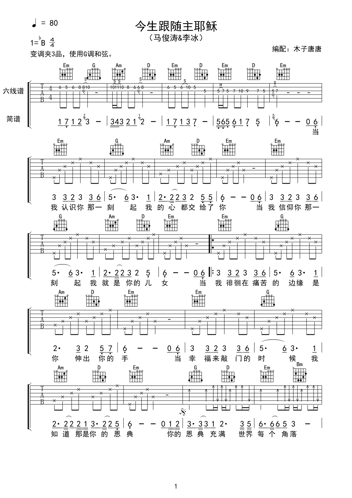 赞美诗《今生跟随主耶稣》吉他谱_G调吉他弹唱谱...